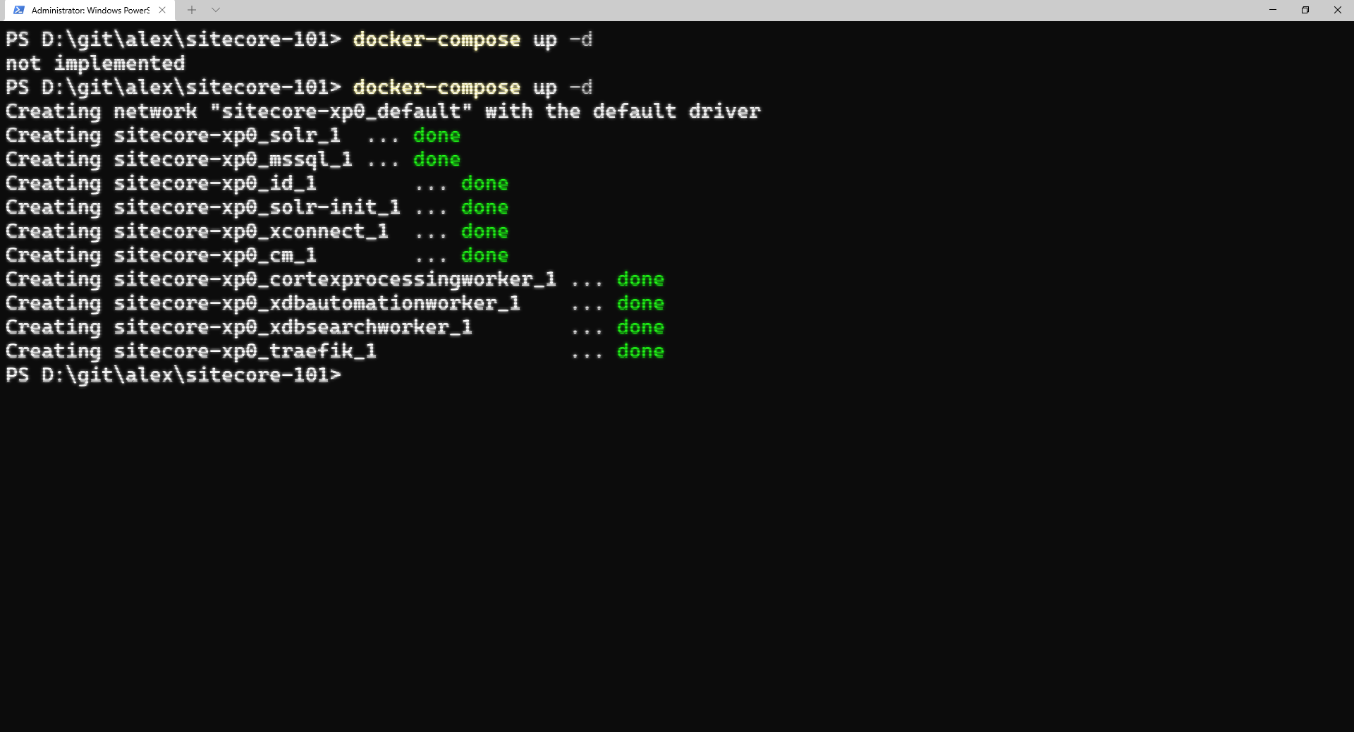 PS D:\git\alex\sitecore-101> docker-compose up -d