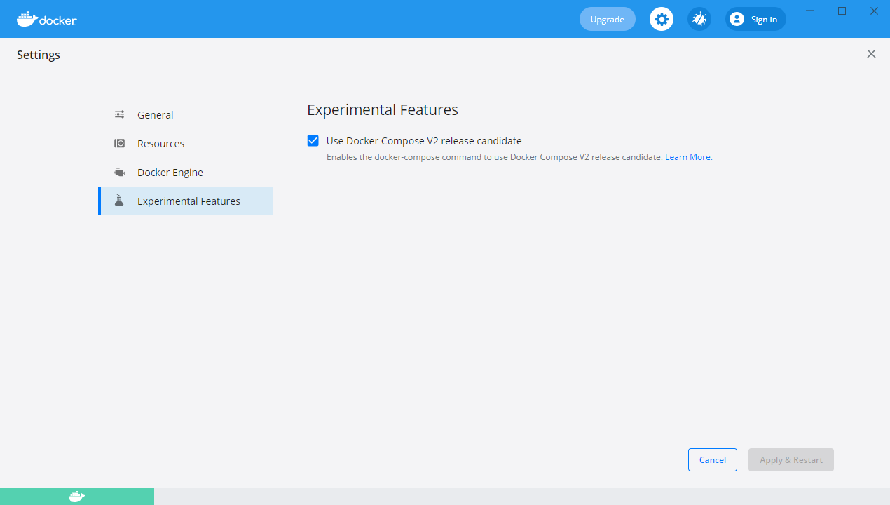 I was easier than I could ever have imagined. During of after the installation of Docker Desktop I somehow managed to enable the Docker Compose v2 release candidate features. I should have never enabled those!