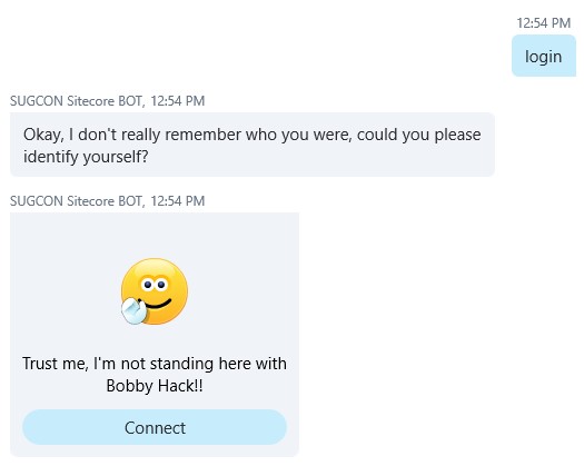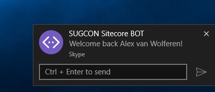 For authenticating the user in the conversation with Sitecore I used the PrivateConversationData to store information about the security context between the user and Sitecore. This PrivateConverstionData was ideal for this purpose. This means that once I authenticated a user with Sitecore it can only be used in the context of a single conversation from a specific user in this conversation because conversations can be held with more than two participants (the Bot and the actual user) and you don’t want others to use your Sitecore powers within that same conversation.