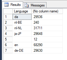 At this point I took a peek into the master database of my Sitecore instance and executed a query to see which languages and how many records there were present in Sitecore.