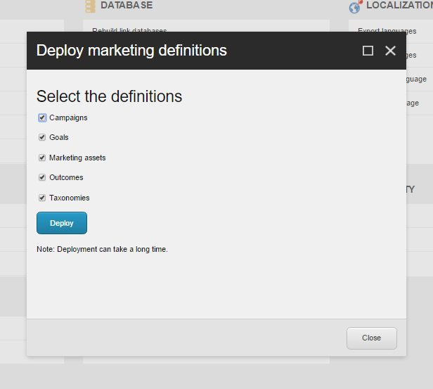 The next thing to do is to hit the button again in for deploying the marketing definitions.